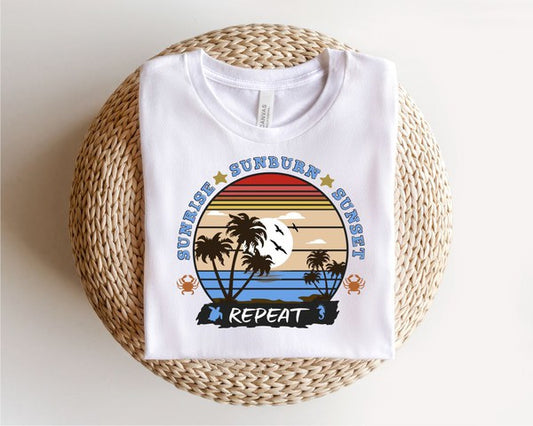 Sunrise Sunburn Sunset Repeat Graphic Boutique Tee