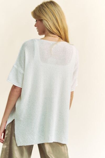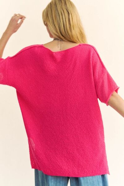 Davi & Dani Side Slit Round Neck Half Sleeve Knit Top