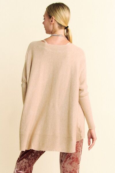 Davi & Dani Ribbed Side Slit V-Neck Sweater