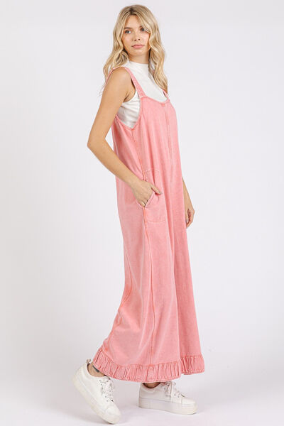 Mittoshop Ruffled Hem Wide Leg Overalls with Pockets