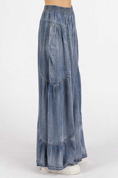 Mittoshop Washed Chambray Tier Detail Wide Leg Pants