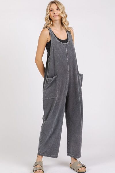 Mittoshop Ruffle Trim Pocket Mineral Wash Wide Leg Pants