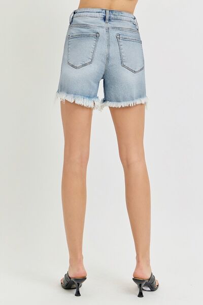 RISEN High Rise Distressed Hem Denim Shorts